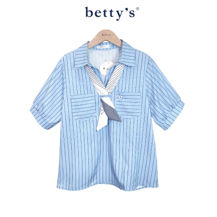 betty’s貝蒂思 條紋V領襯衫附領結(共二色)