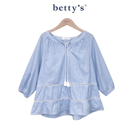 betty’s貝蒂思 甜美細格圓領綁帶七分袖上衣(共二色)
