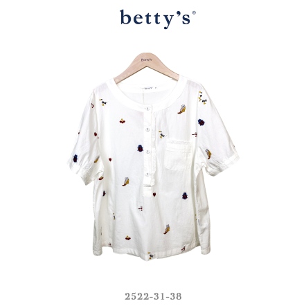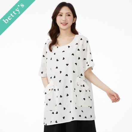 betty’s貝蒂思 棉質澎澎袖小口袋圓領上衣(共二色)