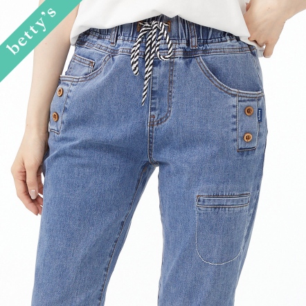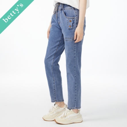 betty’s貝蒂思 抽繩假口袋牛仔長褲(藍色)