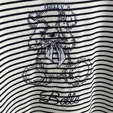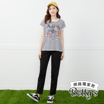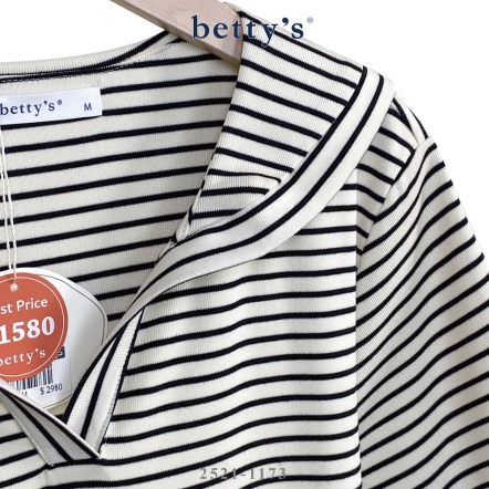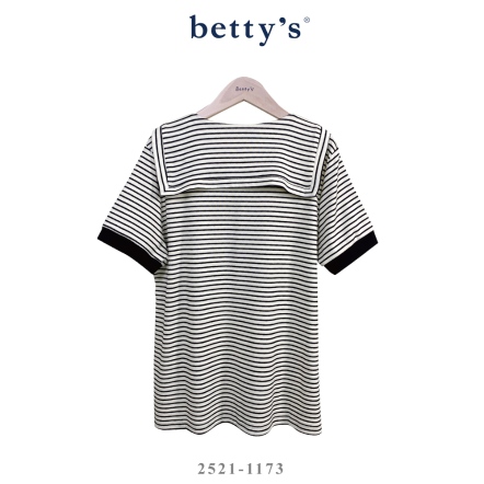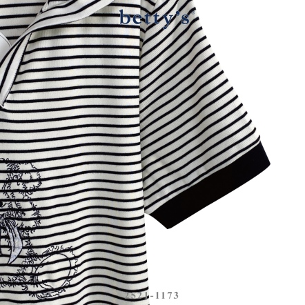 betty’s貝蒂思 條紋海軍領短袖綉小熊上衣(條紋黑)