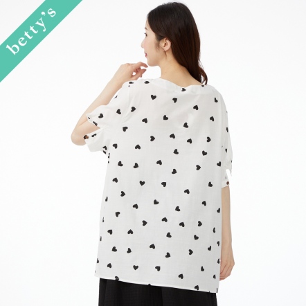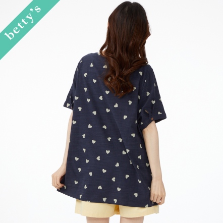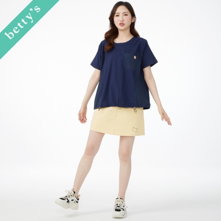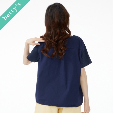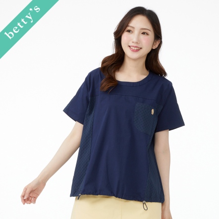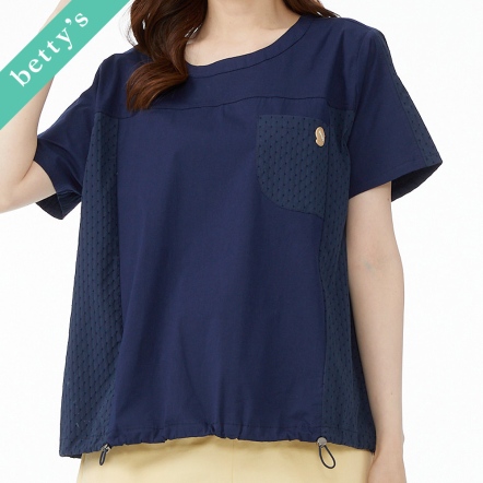 betty’s貝蒂思 小圓點點綴拼接下擺抽繩上衣(深藍色)