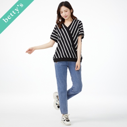 betty’s貝蒂思 條紋拼布胸口口袋圓領短袖(共二色)