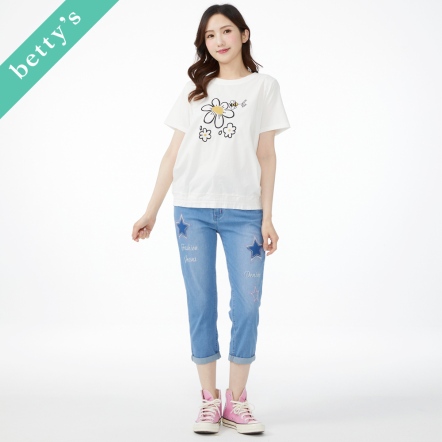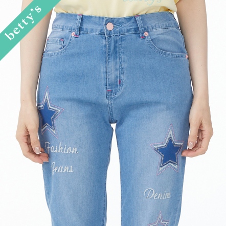 betty’s貝蒂思 星星拼接刺繡七分褲(淺藍色)