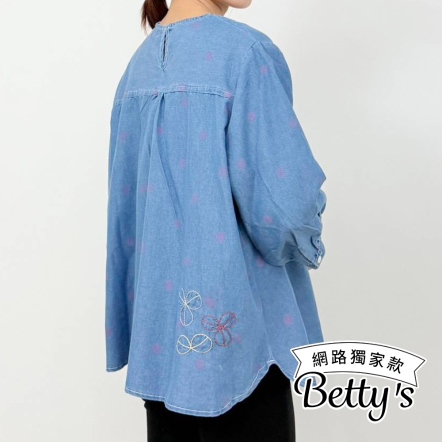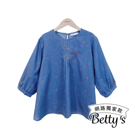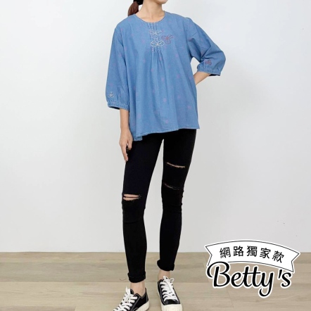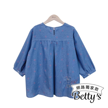 betty’s貝蒂思 甜美刺繡七分袖牛仔上衣(藍色)