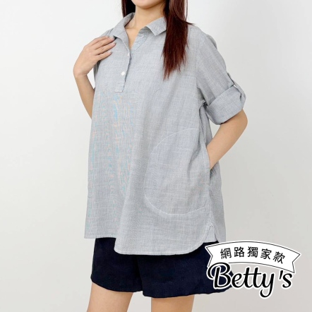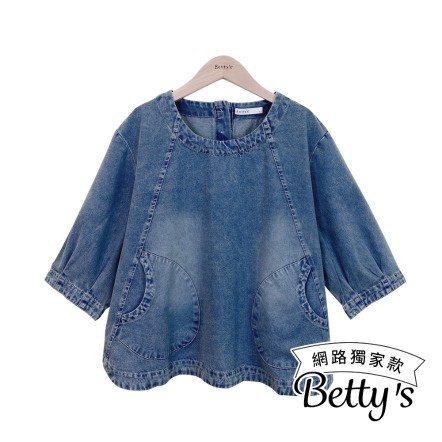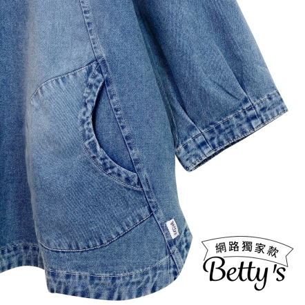 betty’s貝蒂思 簡約大口袋五分袖牛仔上衣(藍色)