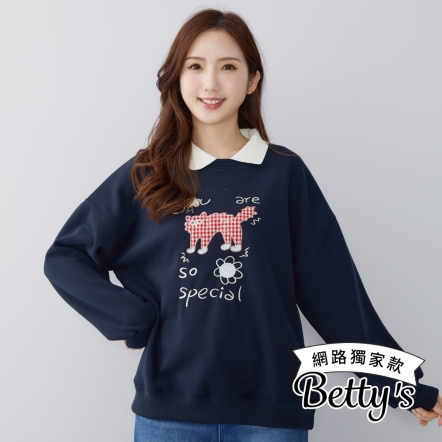 betty’s貝蒂思 可愛貓咪刺繡翻領刷毛T-shirt(共二色)