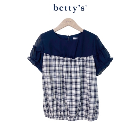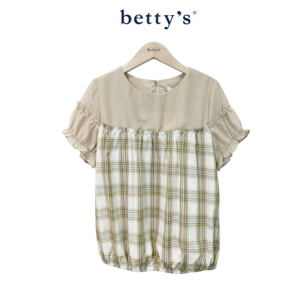 betty’s貝蒂思 撞色格子拼接荷葉袖上衣(共二色)