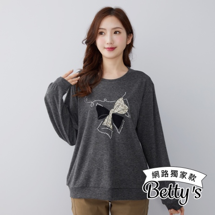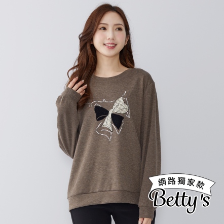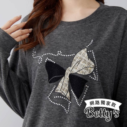 betty’s貝蒂思 蝴蝶結亮鑽圖案微磨毛上衣(共二色)