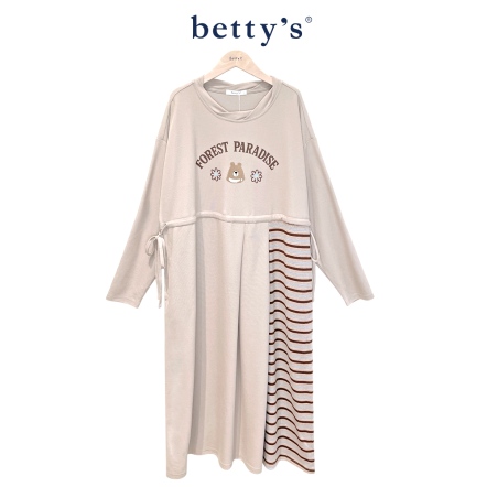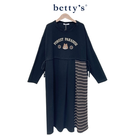 betty’s貝蒂思 花朵熊圓領長襬裁接條紋洋裝(共二色)