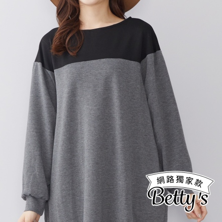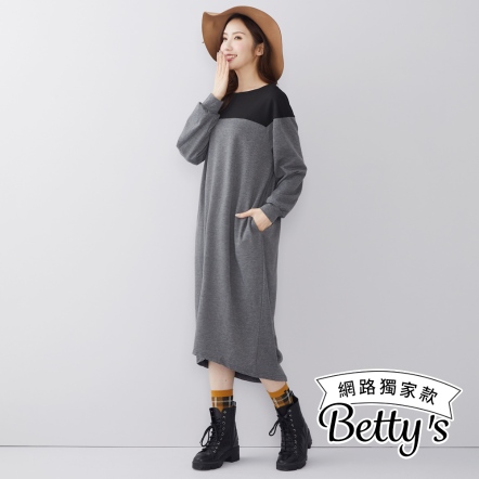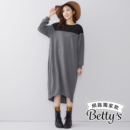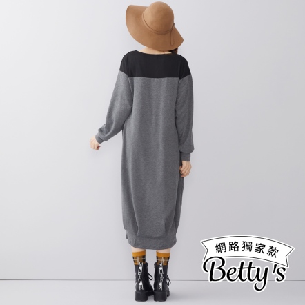betty’s貝蒂思 圓領拼接撞色洋裝(灰色)